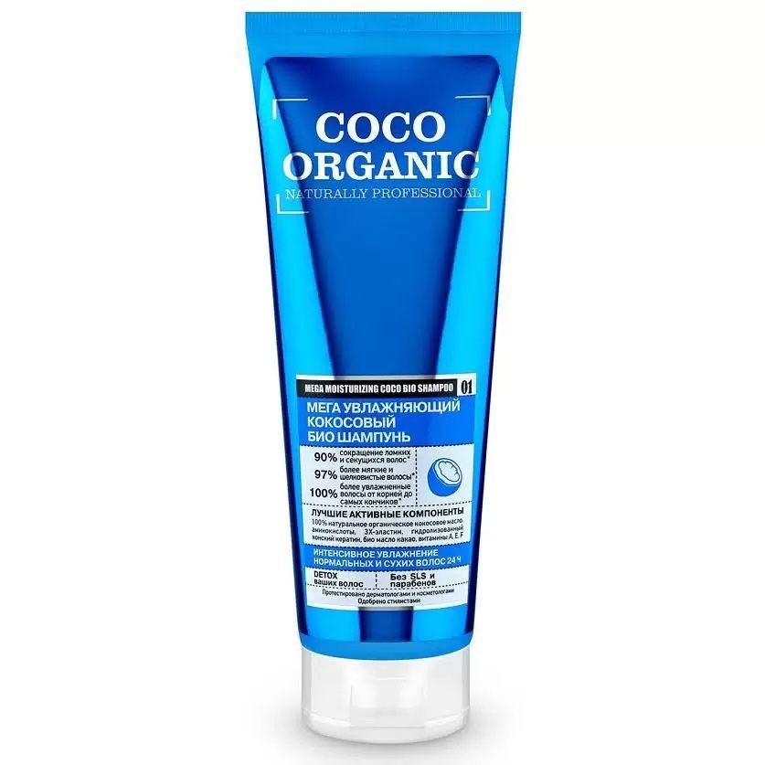 ORGANIC SHOP Био шампунь для волос COCO Мега увлажняющий, 250мл