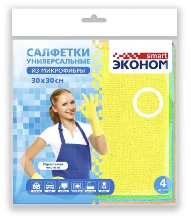 ЭКОНОМ SMART Салфетка МИКРОФИБРА 4шт 30*30см /40