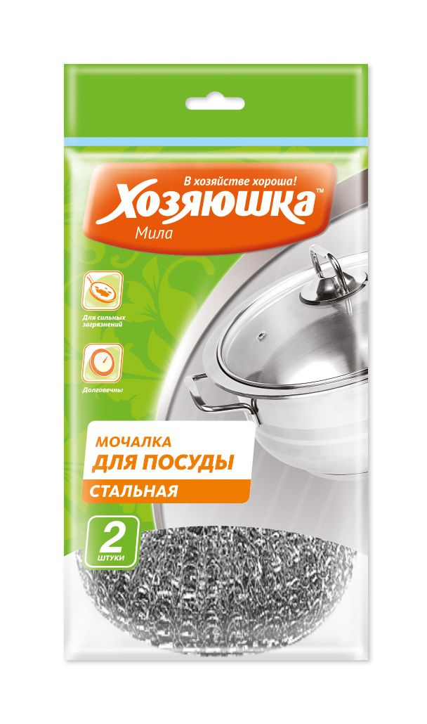 ХОЗЯЮШКА Мочалка д/посуды БОЛЬШАЯ СИЛА стальная 2 шт./02017
