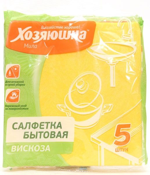 ХОЗЯЮШКА Салфетка бытовая вискоза 350*350мм 5шт